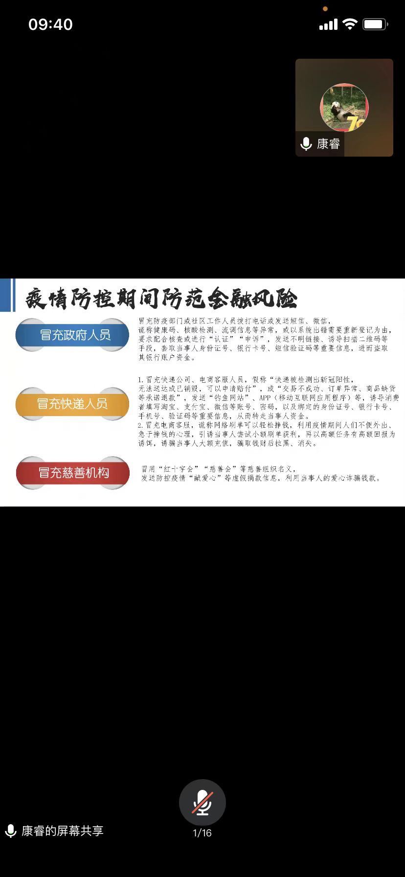 随后,贵州银行总行机关第九党支部党员、贵州财经大学07届国贸专业校友康睿同志面向MK网页版所有党员同志开展金融知识宣传和教育。宣讲过程中他向同学们着重介绍了如何远离“校园贷”的侵害、如何识别和规避疫情防控期间金融诈骗行为、如何有效保护个人信息等相关金融知识,以此提升在校大学生风险防范意识。宣讲结束后结合自身实际案例,与参加本次活动的同学们开展了“学长有话说”校友工作学习经验分享,以个人经历与同学们交流了如何过好大学生活、如何做好走上工作岗位、为社会贡献青春力量等内容,同时与同学们进行连麦交流,对同学们提出的问题认真解答。活动最后,组织所有参加本次活动的同学们参加了党史知识竞猜活动。活动开展过程中,MK网页版学生党支部的党员同志积极参与互动,营造了良好的活动氛围。