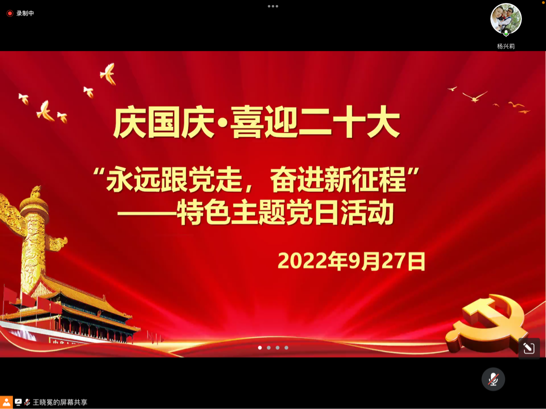 2022年9月27日下午2:30,MK网页版研究生第一党支部全体党员于腾讯会议线上参会,开展“庆国庆•喜迎二十大—永远跟党走,奋进新征程”主题党日活动。