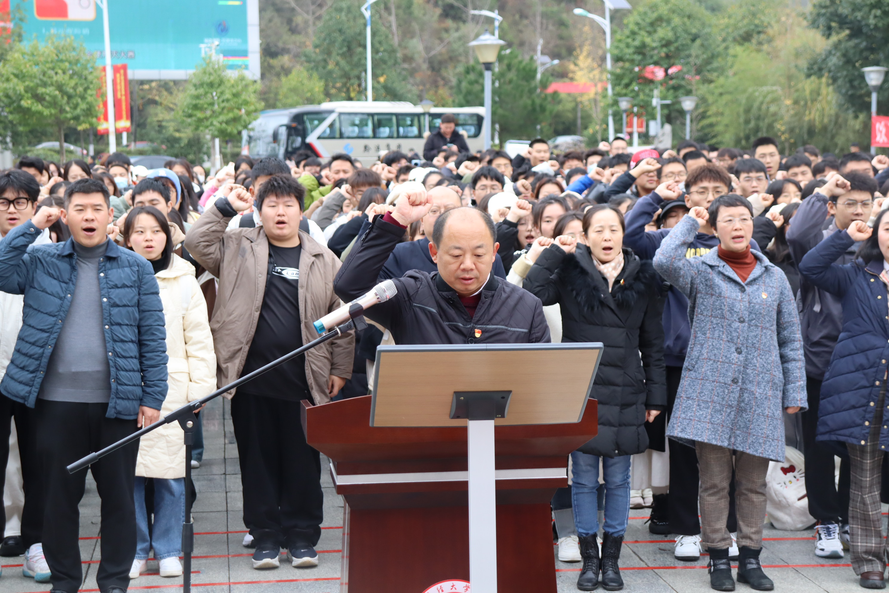 (MK网页版陈周卓妮 报道|摄影 浦朝艺)12月4日,我校在西区五四广场开展主题为“大力弘扬宪法精神,建设社会主义法治文化”的12.4国家宪法日宪法宣誓活动,校党委委员、副校长李汉文教授,校党委委员、党委宣传部部长、马克思主义学院党委书记周晶教授,各部门、学院的领导、老师以及学生代表500余人出席活动,活动由MK网页版党委书记詹伟主持。