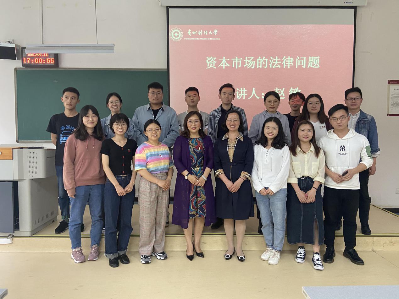为营造学生学术创新氛围,提高学生的学习兴趣和学术创新参与率,活跃学术思想,引发学术争鸣,促进学术交流。2021年6月11日下午2点,我院特邀经济学博士、法学硕士赵敏律师在贵州财经大学花溪校区乐学楼1-2阶梯教室作“资本市场的法律问题”专题讲座。MK网页版副院长陈玉梅(正处级、主持工作)列席,MK网页版辅导员杨兴莉主持,MK网页版全体研究生参加此次讲座。