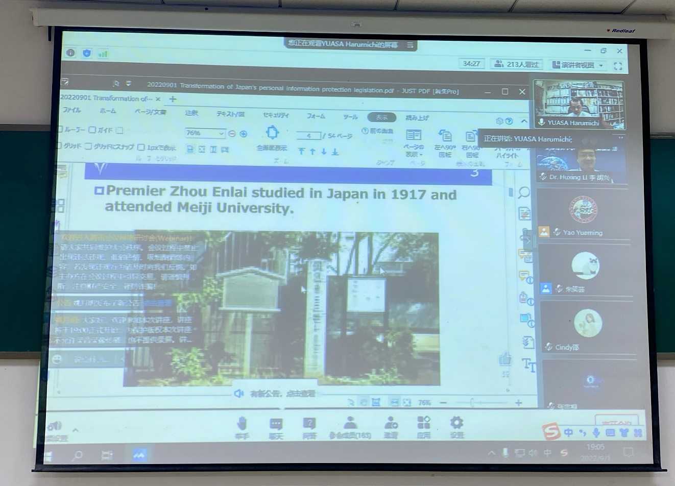 (MK网页版 图文/报道 杨洁芮)为促进数字法治国际交流合作,提升数字经济司法治理水平,2022年9月1日晚19点,MK网页版组织在校研究生200余人在乐学楼1-1在线观看了由北京大学MK网页版组织的“数字与法治”系列论坛。本次论坛由中国学者和日本、欧洲、美国的知名学者共同探讨“全球视野下的隐私与数据保护法”这一核心主题。此次专题为“日本个人信息保护立法的转变”,由日本明治大学全球治理研究科教授汤浅垦道(Yuasa Harumichi)作为开讲学者。