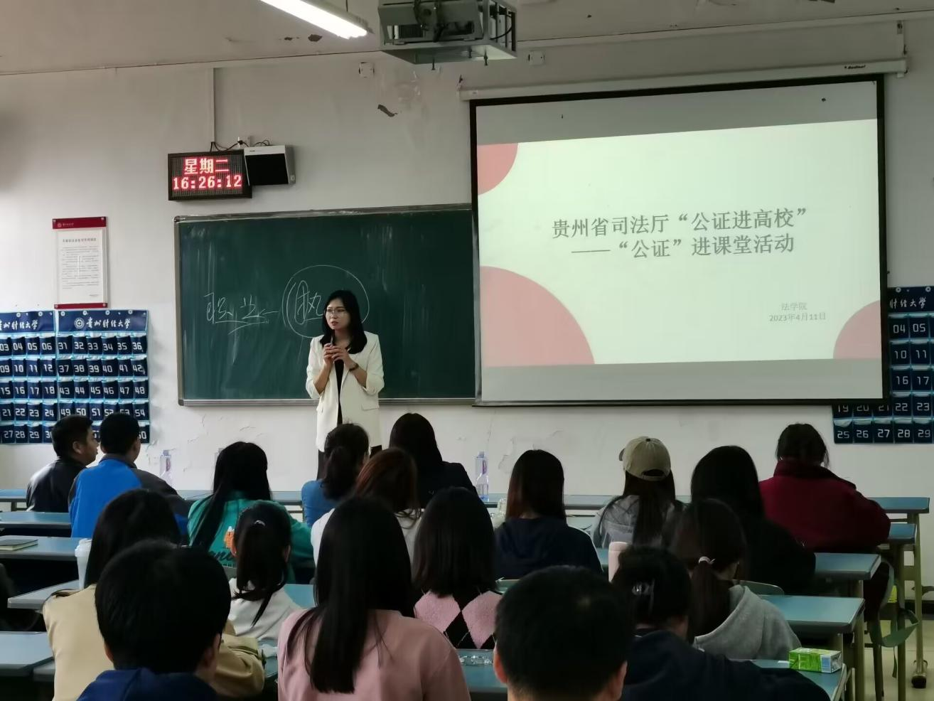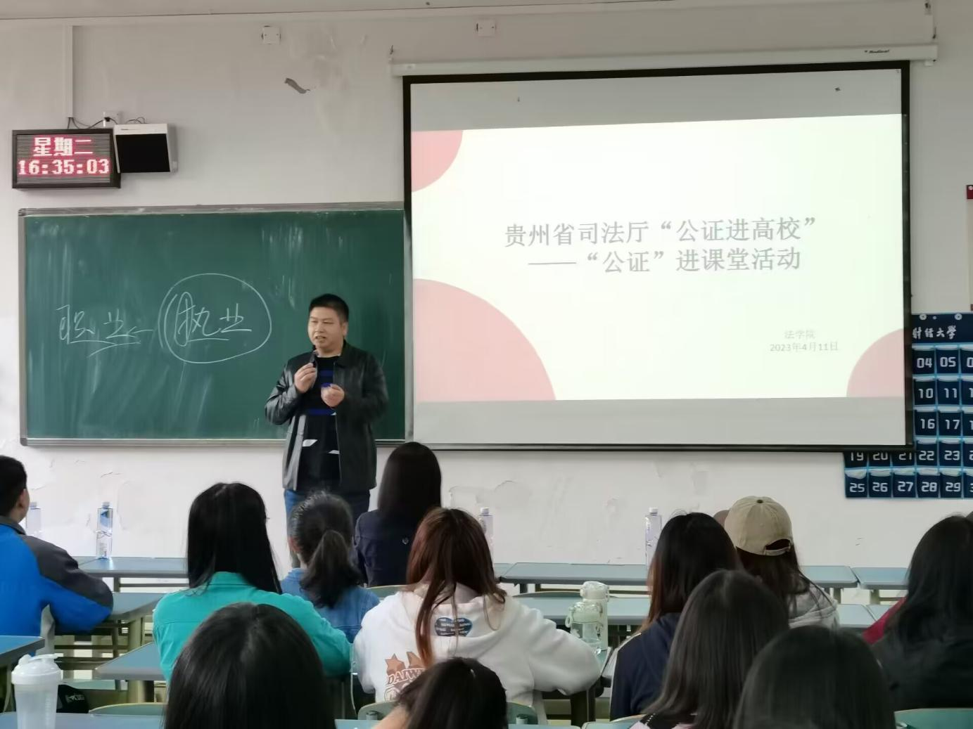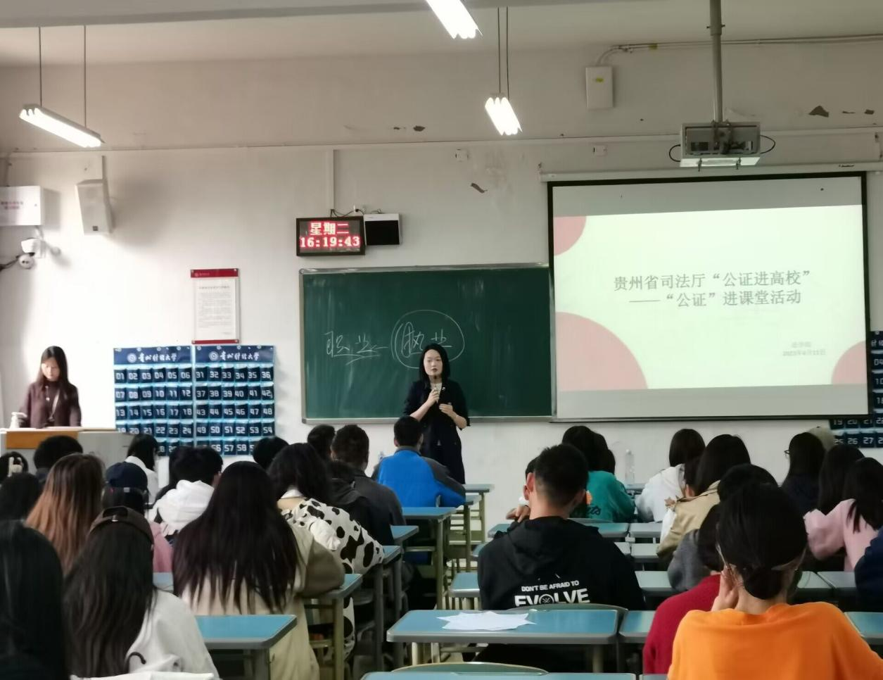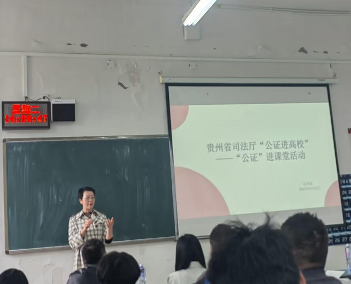 (MK网页版 图文/报道 张显薇)2023年4月11日下午两点,MK网页版120名学生在博学楼2-19教室参加了贵州省司法厅“公证进高校”活动。贵州省司法厅公共法律服务管理处三级调研员申状平,贵阳市公证协会第三届理事会副会长兼秘书长龚燕婕,凤冈县公证处执业公证员、我院2013级法学专业优秀校友王克桃参与此次活动,MK网页版党委副书记、院长陈玉梅主持。