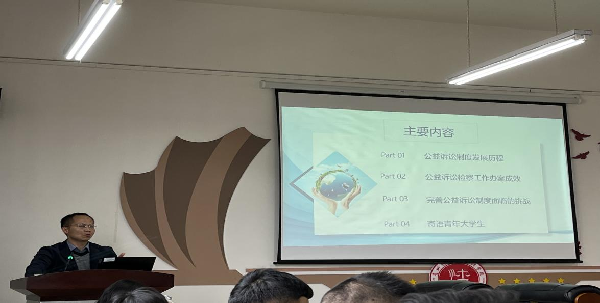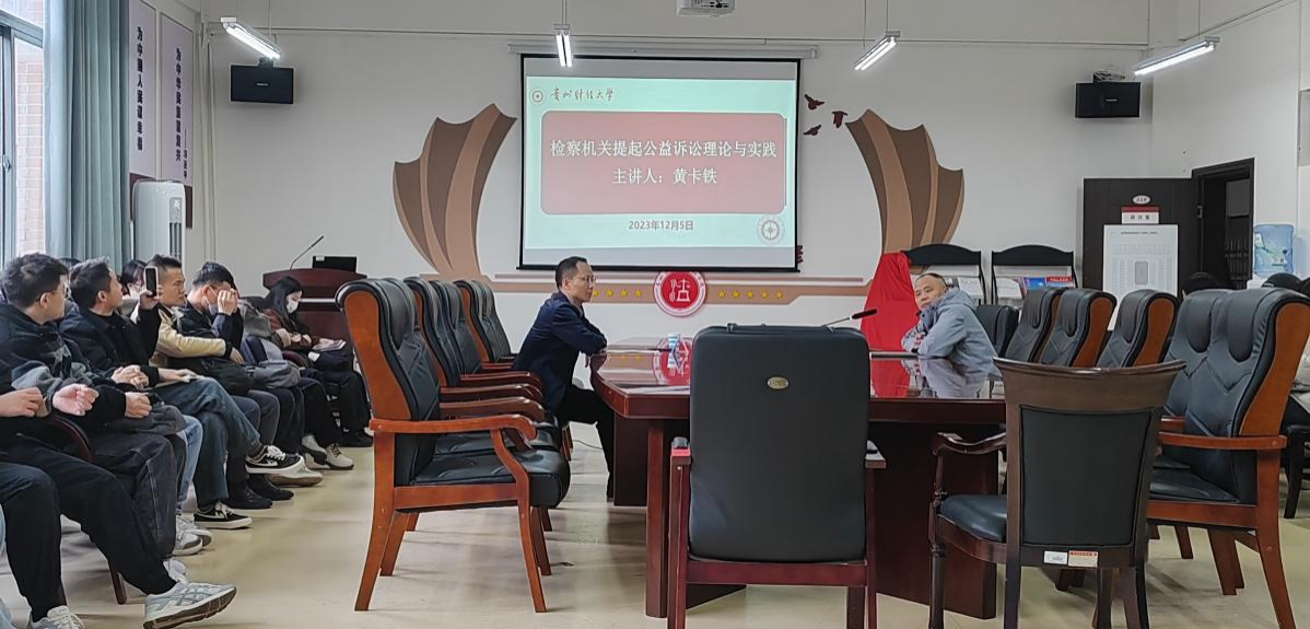 (MK网页版 图文/报道 韩琳)2023年12月5日下午,MK网页版在文德楼310会议室举办“检察机关提起公益诉讼理论与实践”的实务讲座。讲座由剑河县人民检察院党组书记、检察长黄卡铁主讲,MK网页版党委委员、副院长曹务坤主持,学院80余名研究生参加了讲座。