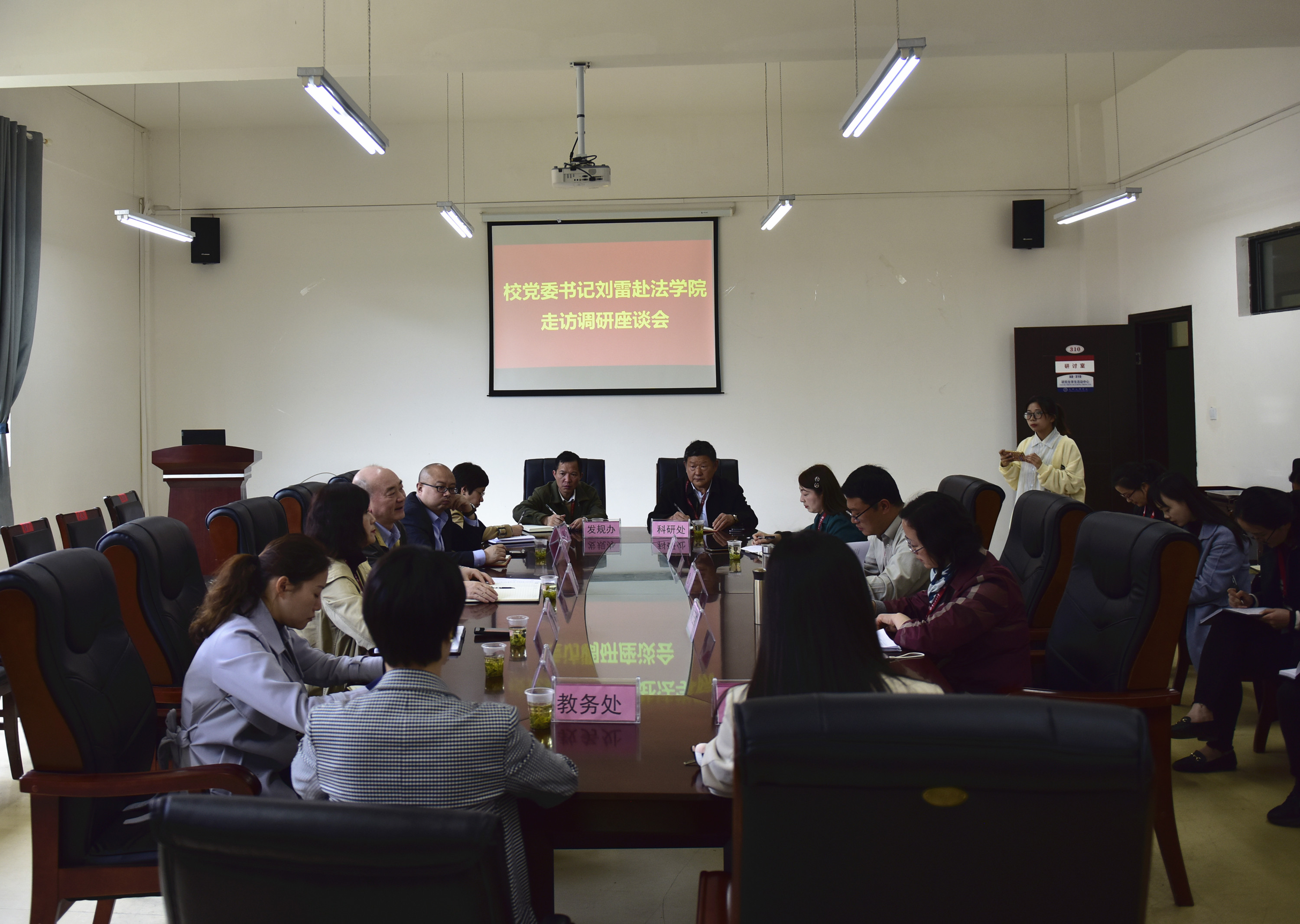 4月20日下午,校党委书记刘雷带领党政办公室、党委组织部、党委宣传部、人事处、发展规划与学科建设办公室、教务处、科研处和国有资产管理处等相关职能部门负责人到MK网页版走访调研,了解学院重新组建后的情况及面临的机遇与困难。MK网页版党委书记詹伟,副院长(正处级、主持工作)陈玉梅,党委副书记彭华,以及全部行政人员、教师代表参加调研座谈会。