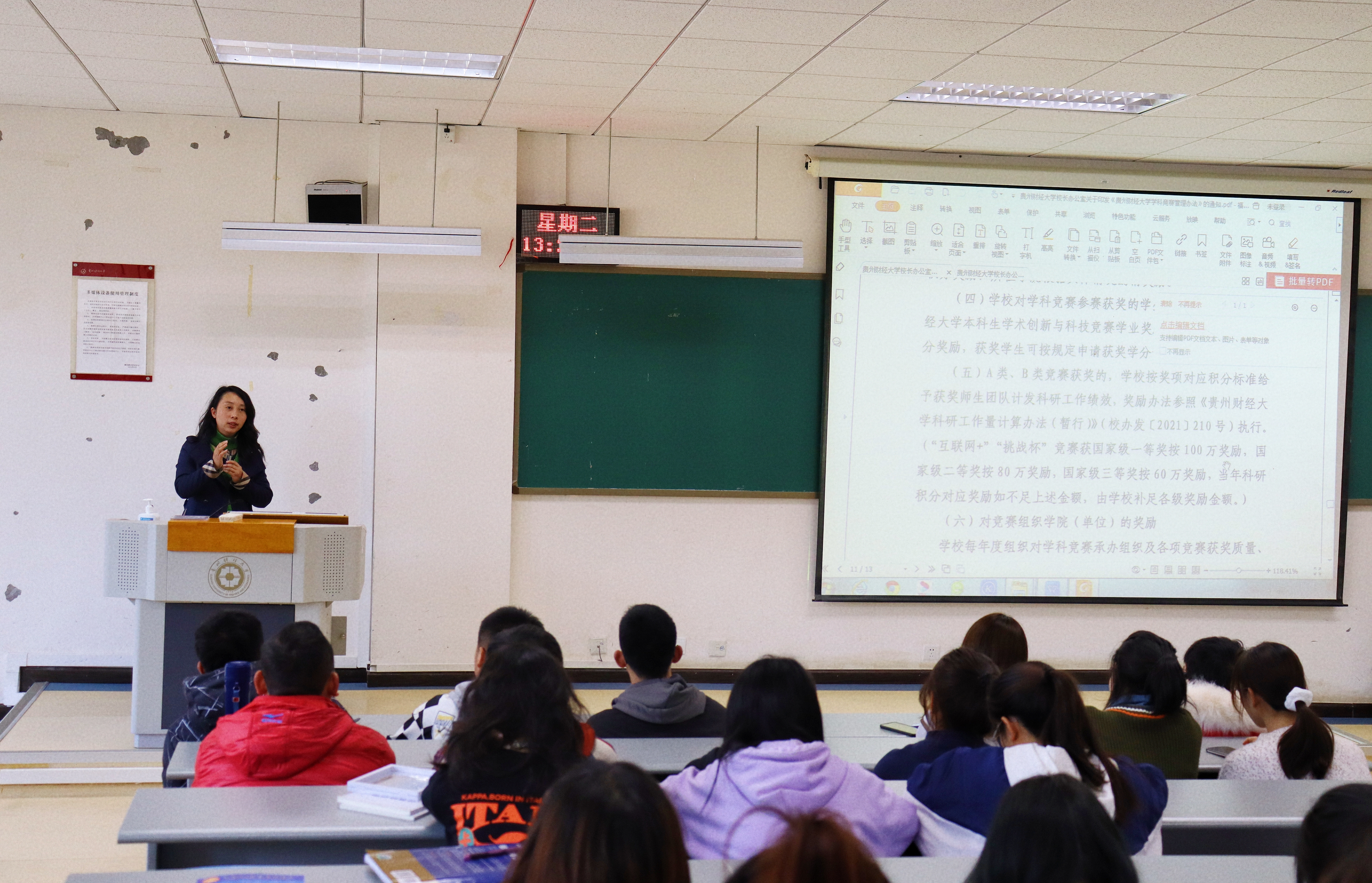 最后,代莉莎对学校下发有关学科竞赛的文件向同学们进行了解读,她指出学院会全力支持同学们参赛,同时勉励同学们要积极尝试、勇于挑战、在参加竞赛中锻炼和发展自身的综合素质能力。