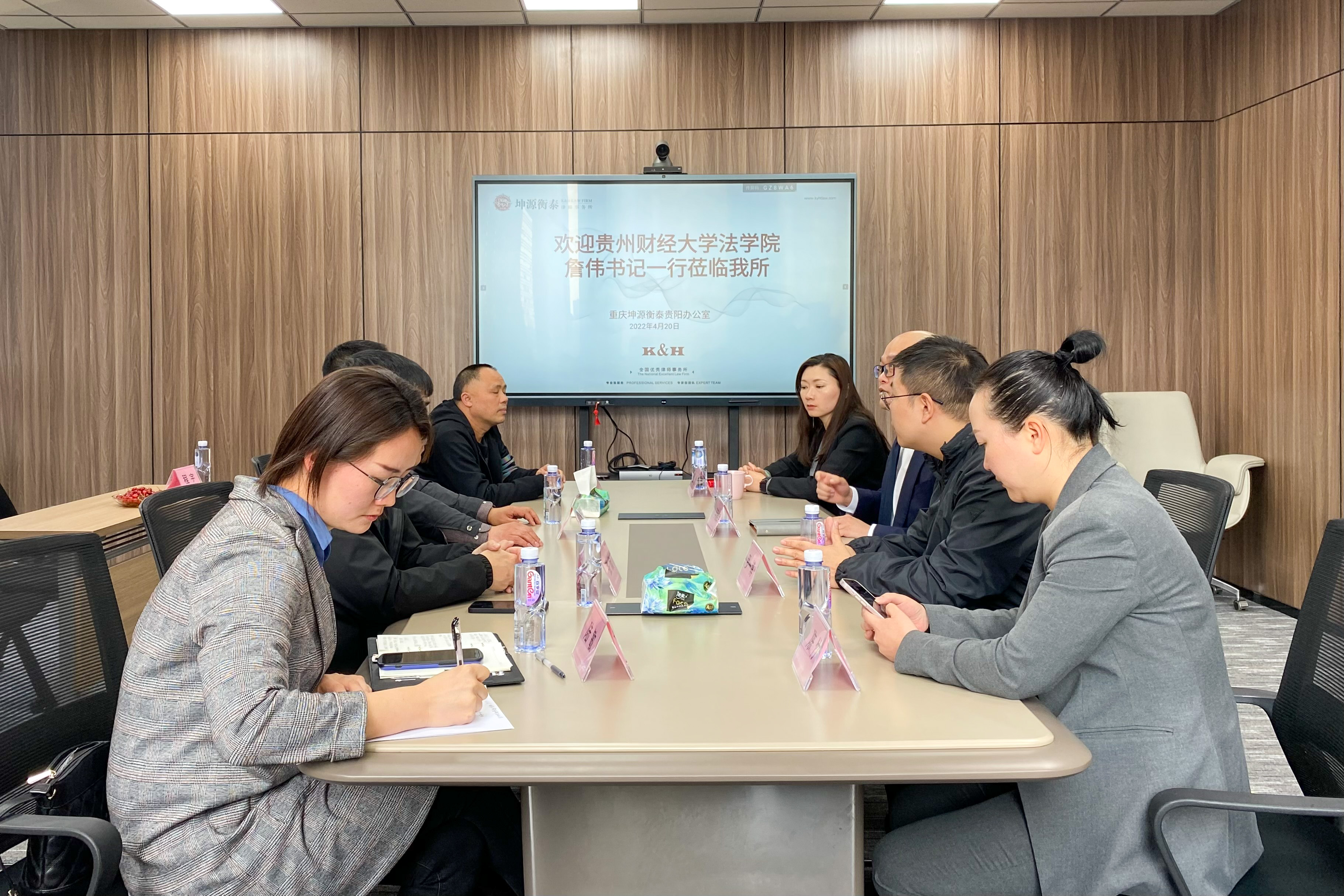 (MK网页版 图文/报道 程宇)为进一步加强我院与校外单位的交流联系,积极为我院学生拓展学习、实习、就业岗位,帮助学生更好的将理论知识运用于实践。2022年4月20日,我院党委书记詹伟带队,教务处张欣、我院教师曹务坤、陆敏、程宇随同赴重庆坤源衡泰(贵阳)律师事务所(以下简称:坤源衡泰律所)举行“MK网页版实践教学基地”揭牌仪式,坤源衡泰律所主任李毅维及相关人员参加揭牌仪式。