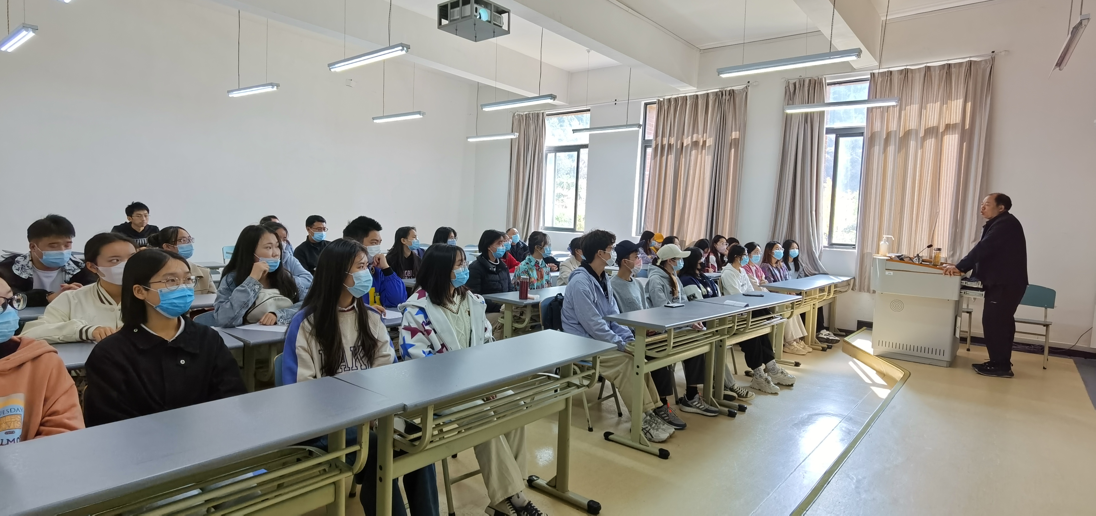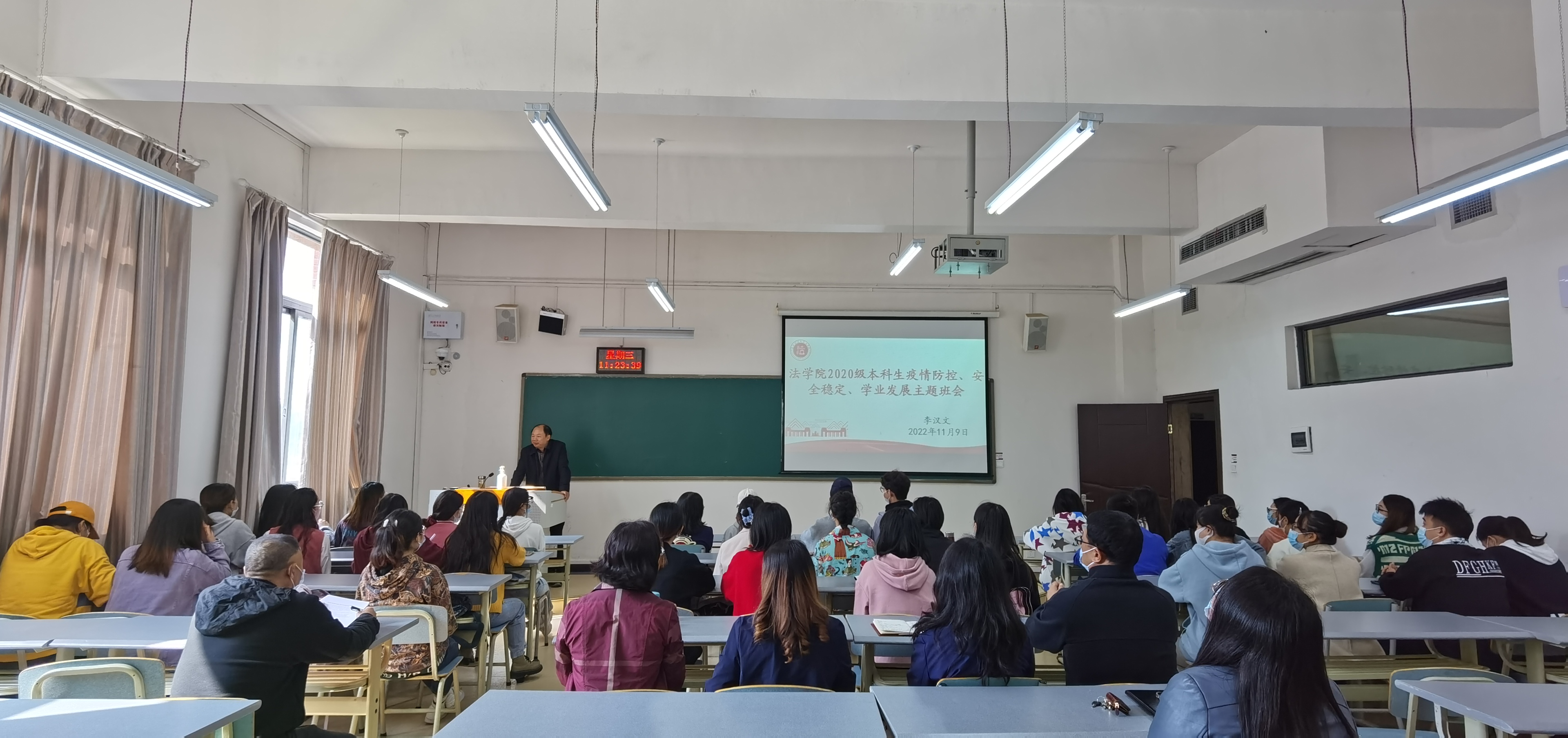 李汉文围绕疫情防控、安全稳定、学业发展、思想政治等方面与同学们亲切交流,向同学们提出三点希望:一是同学们要认真学习党的二十大精神,结合习近平总书记对青年的期望,做好自己的学业规划,立志做有理想、敢担当、能吃苦、肯奋斗的新时代好青年;二是引导同学们要充分认识理解疫情防控的各项要求,以自己的实际行动做好疫情防控工作;三是提醒同学们要增强安全防范意识,保护好自己的人身和财产安全。