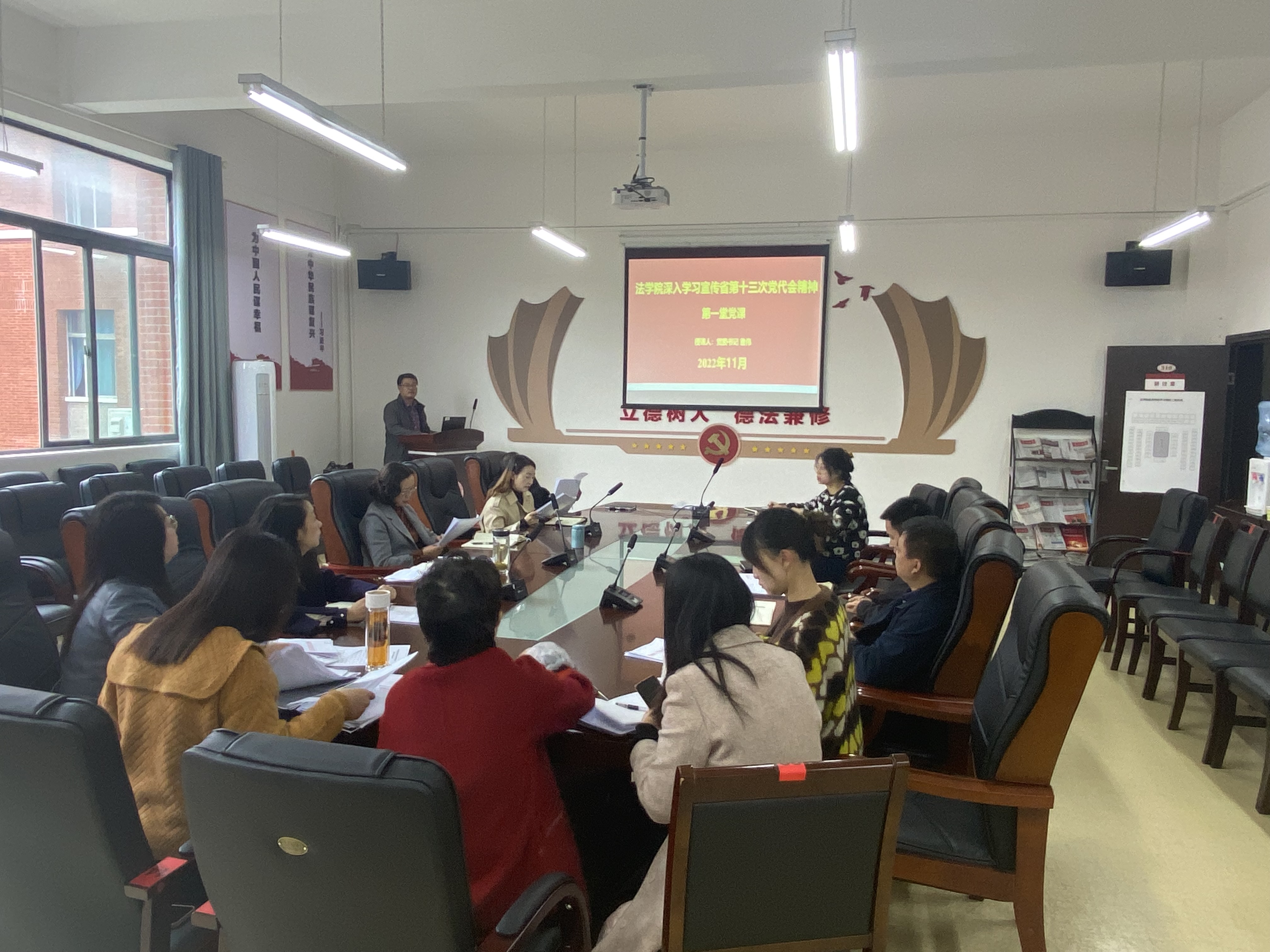 詹伟为全体参会人员作了《深刻领会习近平新时代中国特色社会主义思想》的首堂党课。詹伟在讲课中指出,习近平新时代中国特色社会主义思想是对马克思列宁主义、毛泽东思想、邓小平理论、“三个代表”重要思想、科学发展观的继承和发展,是当代中国马克思主义、二十一世纪马克思主义,是中华文化和中国精神的时代精华,是党和人民实践经验和集体智慧的结晶,是中国特色社会主义理论体系的重要组成部分,是全党全国人民为实现中华民族伟大复兴而奋斗的行动指南,必须长期坚持并不断发展。他要求全体党员要领会和把握好习近平新时代中国特色社会主义思想的世界观和方法论,坚持好、运用好贯穿其中的立场观点方法,在此基础上深刻领悟“两个确立”的决定性意义,进一步增强“四个意识”、坚定“四个自信”、做到“两个维护”,用习近平新时代中国特色社会主义思想武装自己的头脑,奋力谱写“法学新篇章”