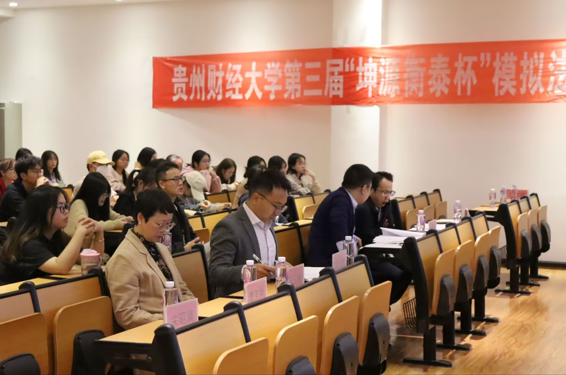 (MK网页版 张月娇 报道|摄影 朱佳免)2023年11月10日,由校团委主办,MK网页版、贵州财经大学法律事务俱乐部承办的第三届“坤源衡泰”杯模拟法庭大赛决赛在笃行楼A栋305教室举行。MK网页版党委书记詹伟,党委副书记、院长陈玉梅;重庆坤源衡泰(贵阳)律师事务所执委会副主任陈竹,资深律师陈窈君、周明雪,律师助理胡丽娇、田益坤出席活动。重庆坤源衡泰(贵阳)律师事务所执委会主任李毅维,MK网页版老师慕徳鸣、李晓波、李杰、罗一博和陈体贵担任评委。