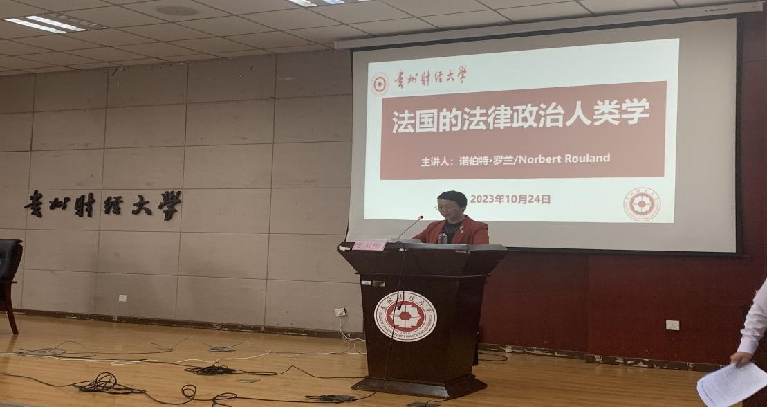 讲座伊始,陈玉梅院长代表学校和学院致欢迎词,在简单介绍贵州财经大学及MK网页版基本情况的基础上,感谢Rouland教授对我院法学学科的指导与帮助,并对Rouland教授莅临我院讲学表示热烈的欢迎。